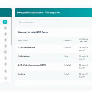 Unsere Datenbank ist nicht nur umfangreich, sondern auch intelligent nutzbar. Dank Echtzeitsuche, Filterfunktionen (nach Name, Formel, Kategorie) und übersichtlicher Darstellung von Nachweisgrenzen und Messbereichen finden Sie schnell die gewünschte Substanz.