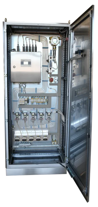 Our system cabinets offer you a fully integrated solution that is specially tailored to the requirements of wastewater treatment plants or biogas plants. All the important components for measuring and controlling your plant processes or monitoring your emissions are housed in a single system cabinet.